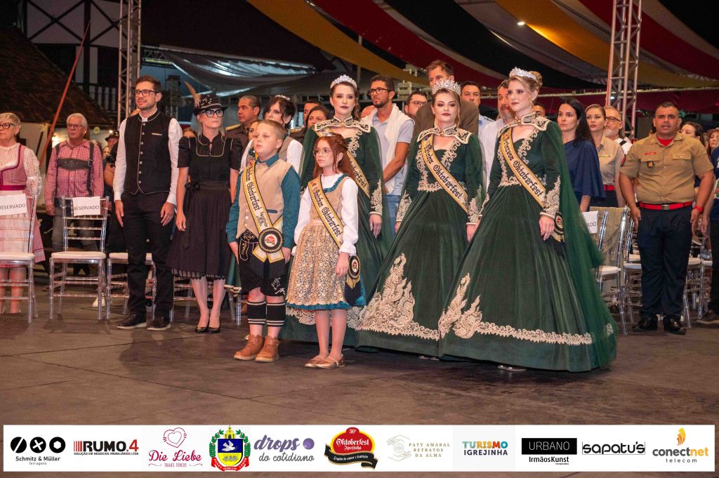 A rainha Isadora Schilling Lauck e as princesas Isadora Celine Roth e Andressa Knobloch Boff também participaram do momento, representando a alegria e a hospitalidade que marcam o evento. “Os dias mais alegres do ano chegaram. É tempo de celebrar a vida, as tradições e o legado que carregamos”, afirmou a rainha Isadora.