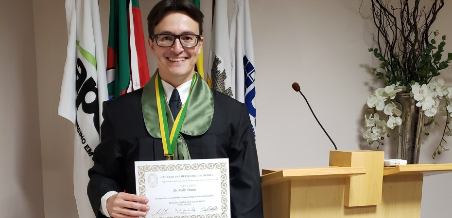 Uma das maiores honrarias que um médico cirurgião pode conquistar é ser Membro Titular do Colégio Brasileiro de Cirurgiões. Em outubro deste ano, o Dr. Fábio Strauss, de Taquara, tomou posse no grupo, em solenidade realizada na Universidade de Santa Cruz do Sul (UNISC). A conquista do título exige a formação de cirurgião geral especialista e leva em conta a análise curricular do profissional, incluindo atividades científicas, participações em congressos e cursos de formação. Assim, a distinção reconhece os mais qualificados cirurgiões. O Colégio Brasileiro de Cirurgiões é a maior entidade de Cirurgiões da América Latina, possuindo membros em várias categorias, desde acadêmicos, aspirantes, membros adjuntos e até titulares.
