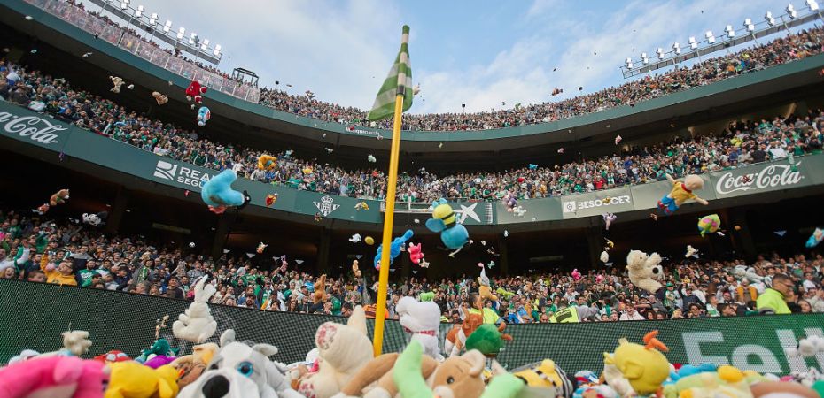Para além da fronteira das quatro linhas, um lindo gesto de solidariedade ocorreu no último domingo, 23, proporcionado por torcedores do Real Betis Balompié, clube da região da Andaluzia, sul da Espanha. No intervalo da partida do clube contra o Atlético de Madrid, válida pelo Campeonato Espanhol, os torcedores “verdeblanco” arremessaram ao gramado centenas de bonecos e bichos de pelúcia para que sejam doados às crianças carentes de Sevilla, neste final de ano.
