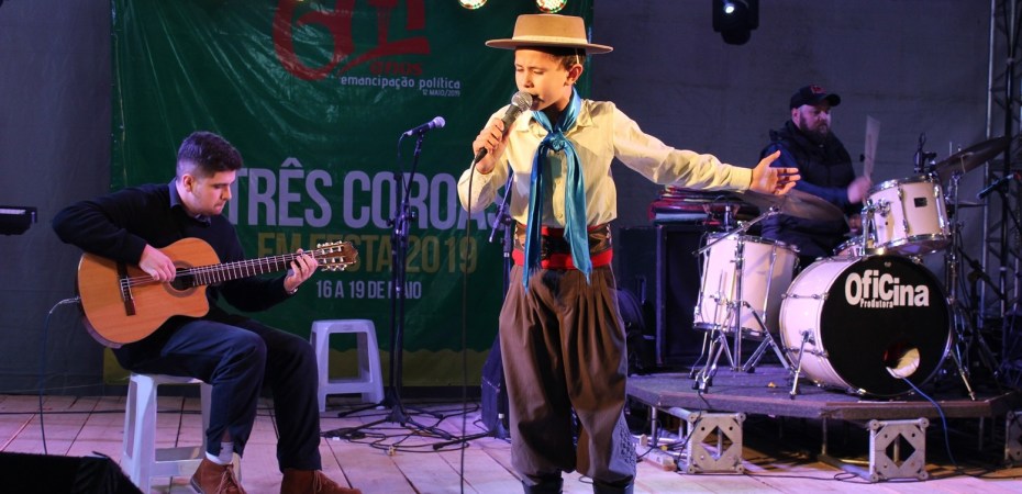 As inscrições para o Festival de Músicos Amadores de Três Coroas, que integra a programação da 20ª edição da Três Coroas em Festa, começam hoje, 10, e vão até 24 de abril. O concurso será dividido nas categorias Sertanejo, Música Popular Brasileira e Gaúcha e Infantil (até 13 anos). O número de inscrições é limitado, sendo apenas 15 candidatos em cada estilo musical. Cada concorrente deverá participar com apenas uma música, onde serão avaliados ritmo, afinação, disciplina e postura no palco.