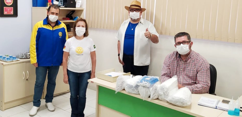 As unidades, confeccionadas pelos próprios parceiros, foram entregues pelos rotarianos Levi Metanoya, Jorge do Amaral e a presidente do clube, Marli Bueno da Silva, ao secretário de Saúde, Vanderlei Petry. “Ficamos muito felizes em contribuir neste momento tão delicado de prevenção ao Coronavírus”, salienta Metanoya.