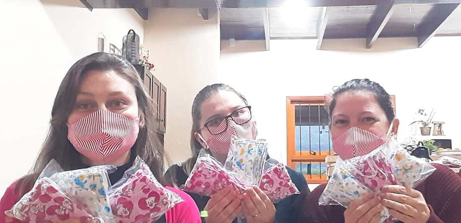 Como a maioria das doações recebidas eram de máscaras para adultos, elas notaram a necessidade em atender aos pequenos também. Por isso, as enfermeiras Andréia Rosa, Marcia Ganzer e Maiara da Silva conseguiram doações de TNT e elástico, além de adquirirem alguns itens e passaram a fazer máscaras para as crianças. Andréia já tinha experiência com costura e ensinou as colegas. Elas se reúnem a cada 15 dias para continuar a produção e já confeccionaram 112 peças.