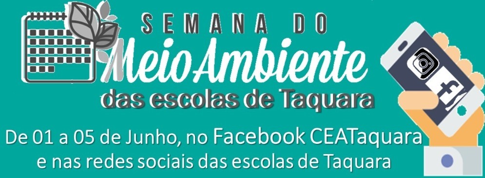 Os educandários de Taquara promovem, até o dia 5 de junho, a Semana do Meio Ambiente Virtual. O evento traz uma programação com 147 atividades que podem ser encontradas na página do Coletivo Educador Ambiental de Taquara (CEATaquara) no Facebook e Instagram.