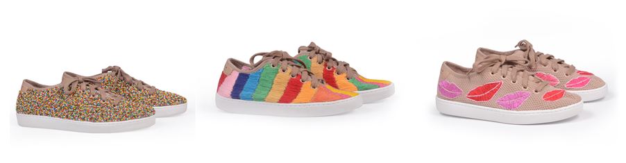 “É uma grande alegria poder contribuir com as mulheres que são detentoras dos nossos saberes ancestrais e incentivar a cultura e o artesanato brasileiro num momento como esse”, conta Dudu Bertholini. Para a coleção colaborativa, quatro estampas foram elaboradas: Rainbow, Confete, Flor e Beijo. Cada tênis, que é de tecido na cor avelã, será trabalhado com o desenho escolhido pelo consumidor. Junto dele, ainda serão enviados uma máscara de proteção, com o mesmo tema, e um mimo – recorte de tecido no qual estará gravado o nome da bordadeira daquela peça.