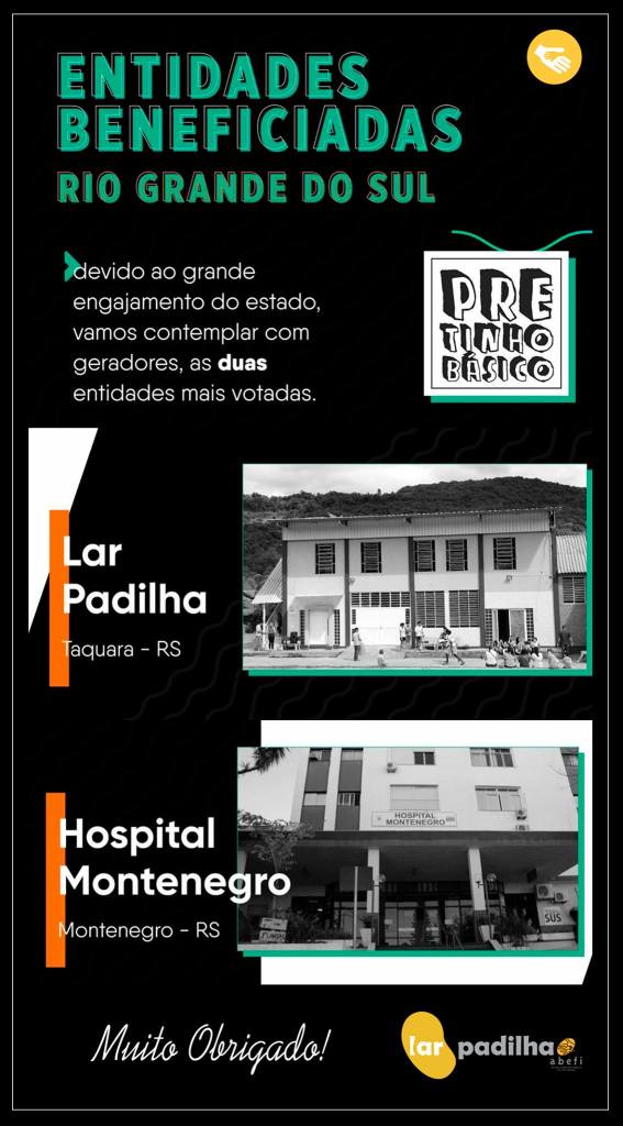 Em uma campanha em ação conjunta com o programa Pretinho Básico, da Rede Atlântida, a Renovigi Energia Solar, maior fabricante de sistemas de energia solar do Brasil, contemplou o Lar Padilha, em Taquara, com a doação de um Gerador de Energia Solar, através do projeto “Energia do Bem“. A ação é resultado de uma campanha de mobilização de indicações no Instagram que teve o objetivo de beneficiar entidades envolvidas no combate ao Covid-19 na região sul do Brasil.