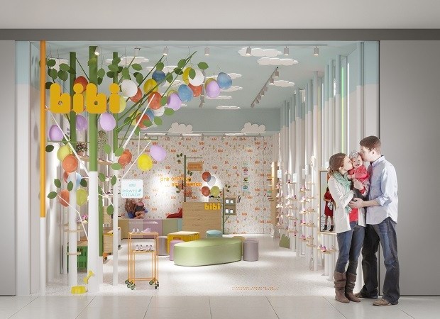 Entre as novidades, as unidades no modelo Light não terão vitrine. Na entrada haverá uma tela para conteúdo, com informações sobre os produtos da marca, um espaço Pet Friendly e uma área para informar sobre ações e campanhas. No interior da loja, haverá a sinalização dos serviços oferecidos pela Bibi, como o Prateleira Infinita, Clique e Retire, Entrega Expressa, Bibi Delivery e Bibi Home. Nas paredes, além de poder conferir todas as linhas de calçados da marca, será possível ter detalhes sobre a linha de produtos e os diferenciais. Para deixar a experiência ainda mais divertida e para que os pequenos possam usufruir melhor do espaço, haverá uma pequena piscina de espuma. Para os papais, a marca implantará um totem para que possam carregar os celulares e um espaço para que, junto com as crianças, possam escolher como personalizar com nome os calçados.