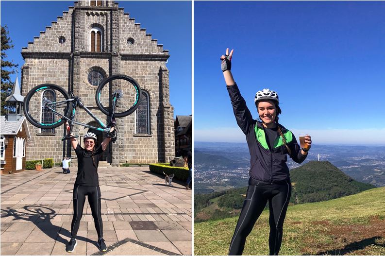 Há apenas quatro meses a estudante de Fisioterapia e recepcionista na Academia SportCenter, Larissa Dias, de 19 anos, comprou uma bike e iniciou no esporte, por incentivo da amiga Natália Müller. Orgulhosa, ela conta que a dupla, pedalando apenas em finais de semana, já soma mais de 1.000km percorridos. “Ser ciclista é divertir-se no trajeto e repor todas as energias vitais. É superar-se e conseguir ir além do que nós mesmos já tínhamos imposto como nosso limite. É ser viciado no sentimento de liberdade com o vento que bate no rosto”, declara. Muito além dos benefícios que a bike oferece para o corpo, Larissa cita que conquistou equilíbrio entre corpo e mente. “Me distraio, me supero, conheço lugares e pessoas maravilhosas! Funciona como terapia”, completa. Apesar de ainda ter muitos lugares que quer conhecer, ela já tem algumas rotas que adora e indica: o trajeto de Solitária até o Morro Alto da Pedra e do Xaxim, a barragem de Canela e a localidade de Picada Francesa.