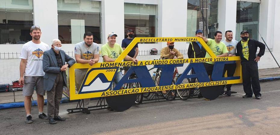 A partir de uma justa homenagem, a Associação Taquarense dos Amigos Ciclistas (ATAC) foi além e presenteou a comunidade taquarense com um bicicletário no centro da cidade, com capacidade para 10 vagas. Desde o último domingo, 13 de setembro, está disponível aos munícipes no espaço da vaga 373 da Área Azul (estacionamento rotativo), na rua Guilherme Lahm.