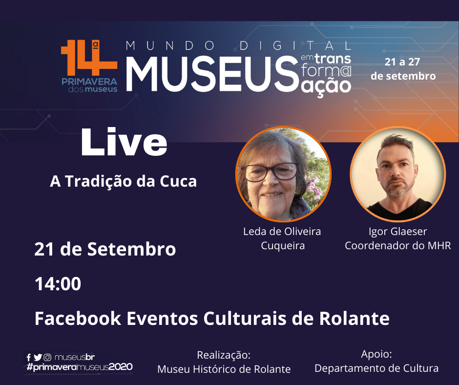 No mês de setembro o Museu Histórico de Rolante estará participando da programação nacional da 14ª Primavera dos Museus. Com o tema “Mundo Digital: Museus em Transformação”, o assunto aborda a nossa realidade e também traz um momento de repensarmos as atividades de forma virtual.