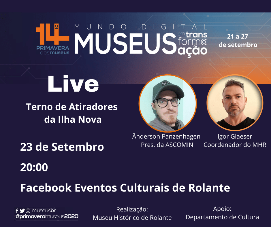 A proposta consiste na divulgação de vídeos do projeto “Fragmentos da nossa história”, sobre aspectos culturais e históricos do nosso município e também lives sobre cada assunto. Os vídeos serão postados nas páginas do Facebook Amigos do Museu Histórico de Rolante e Eventos Culturais de Rolante. As lives serão realizadas pela página dos Eventos Culturais de Rolante.