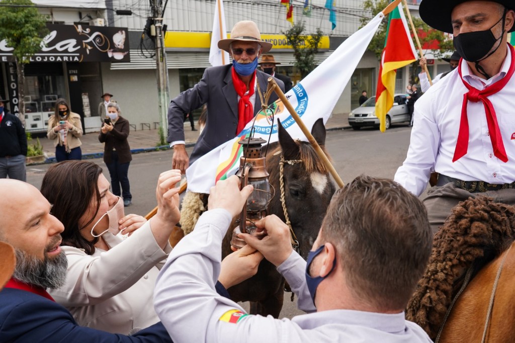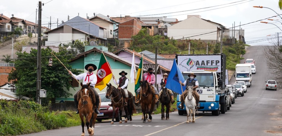 Seguindo todos os protocolos de saúde e segurança, um desfile itinerante com seis cavalarianos e um caminhão conduzindo o Grupo Gurizada Tchê, organizado pela Associação Amigos dos Festejos Farroupilhas do Paranhana (AAFFP), passou pelas principais ruas de Taquara. O desfile seguiu até à Praça Marechal Deodoro, onde foi recepcionado por autoridades municipais e tradicionalistas.