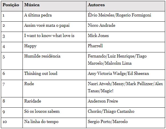 Ranking das músicas mais tocadas nas rádios nos últimos 10 anos em todo o Brasil