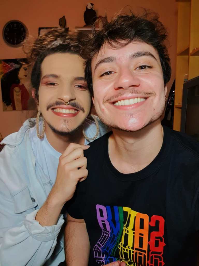 “Como artistas, entendemos que a arte é essencial para alcançarmos nossas totalidades. Ela entra para esclarecer angústias adormecidas, como a mão tão necessária na infância. Um lugar de desencilhamento de amarras que ‘outres’ criaram e nos fizeram acreditar que fossem nossas verdades, é um lugar de liberdade absoluta, onde a voz transpassa refletindo toda a potência dos nossos quereres. A arte afeta, atravessa e rega afeto. Abraçamos nossa verdade no palco. Somos hoje, por conta da arte. Somos o que quisermos. Vivendo a metamorfose da poesia, do agora, do presente viver”, partilha o casal que encontrou suas verdades através da arte, por meio do teatro, usando a linguagem neutra em seu discurso e em todos os materiais do projeto para abraçar a diversidade de SER.