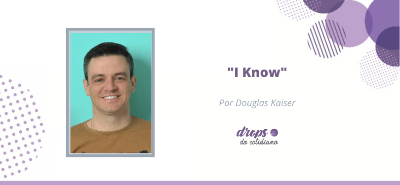 “I Know” é uma frase que está estampada em uma camiseta que ganhei, cujo complemento dela é outra camiseta escrita “I love you”. A tradução para “I Know” é “Eu sei”.