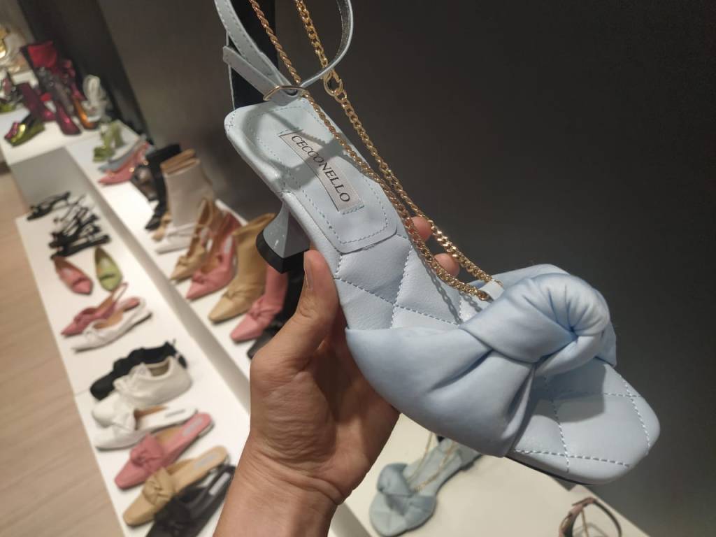 A marca três-coroense Cecconello também apostou na tendência Soft (o material fofinho que já falei antes). Esse modelo tem uma palmilha super macia e um saltinho em uma altura perfeita para o dia a dia, além do detalhe em corrente removível. Um charme só!