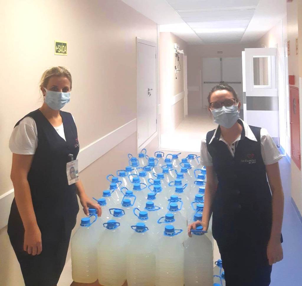 A companhia gramadense que comanda as marcas Chocolates Lugano e Rasen Bier fez a doação de 60 galões de álcool gel ao Hospital São Francisco de Assis, de Parobé. Ao todo, são 330 litros do produto essencial no dia a dia da casa de saúde.