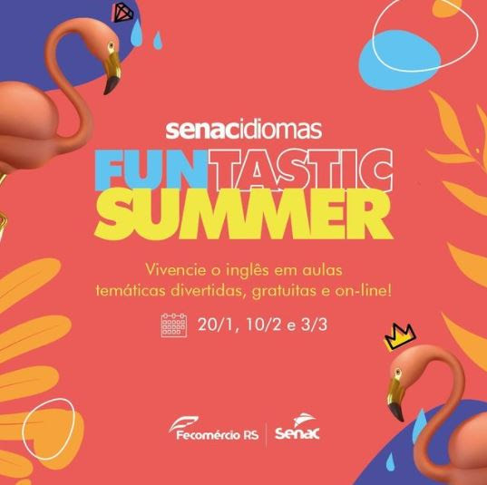 Um verão para experimentar um novo idioma. Entre os meses de janeiro e março, o Senac-RS promove um novo projeto no Estado: o FUNtastic Summer. A iniciativa consiste em nove aulas temáticas de inglês voltadas a crianças, jovens e adultos. Os encontros serão gratuitos e transmitidos pelo You Tube do Senac-RS.
