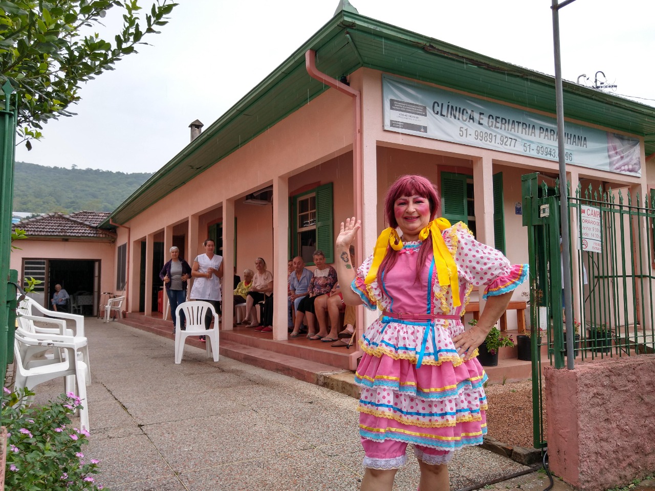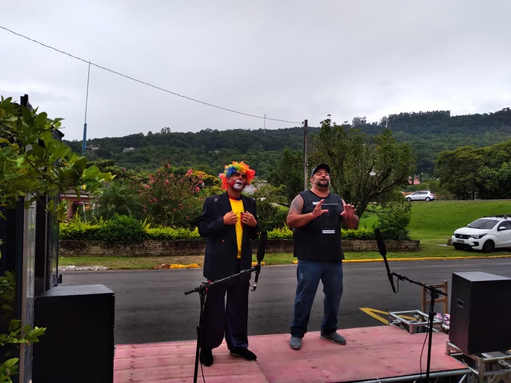 Levar um momento de alegria proporcionando risos aos idosos que residem em lares foi o objetivo maior da ação realizada pelo Grupo Teatral Criando Arte e Teatro, realizada na última semana. Os integrantes levaram o espetáculo humorístico “Astolfo Apronta nos Lares” para cinco geriatrias de Igrejinha, respeitando o distanciamento e protocolos de segurança. Misturando humor circense com situações do cotidiano, a peça é estrelada pelos personagens Astolfo (Claudio Arnei Machado Fogaça), Chiquinha (Ju Pimmel), Loko Priscilico (Paulo Fernandes) e Gadeia (Geovani Perondi), com Claudinei Amaral e Solange Viaziminski (Harmonia Musical) responsáveis pela estrutura do palco e sonorização.