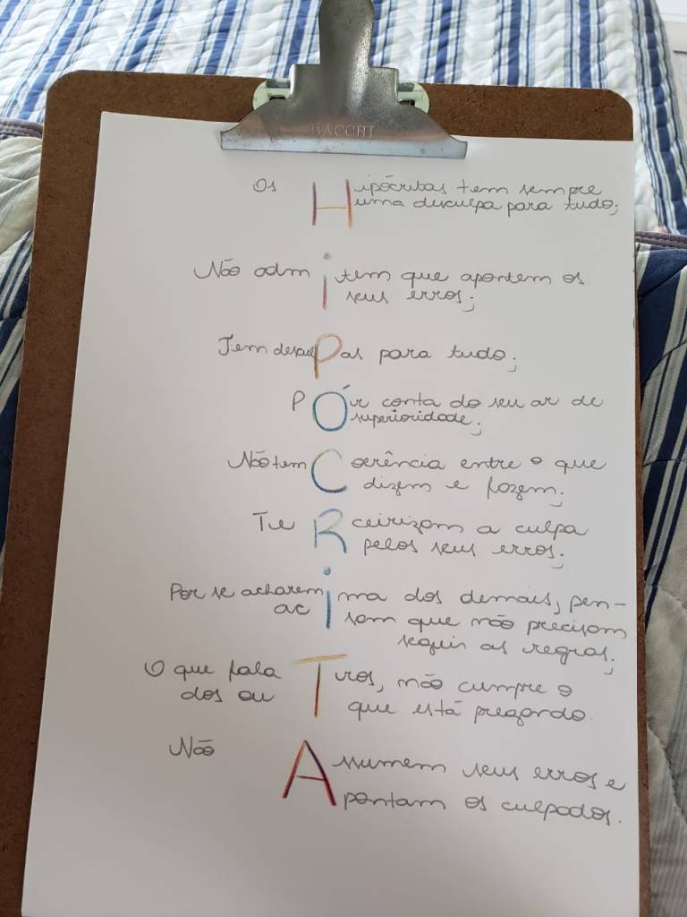 Podemos estar sendo hipócritas sem perceber. Eu peço desculpas pelas minhas falhas, pelos meus descuidos.