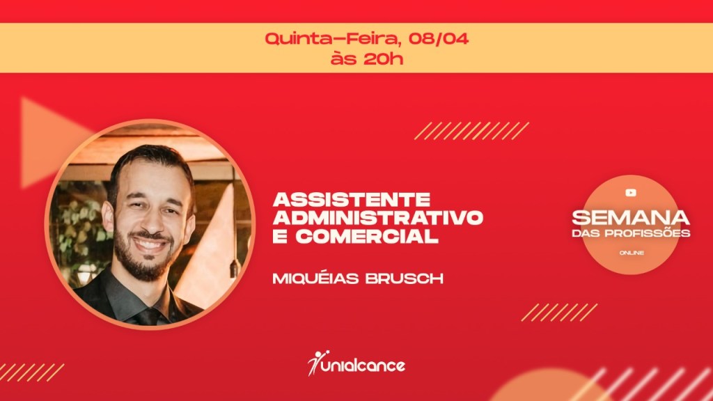 Antes de escolher uma carreira a ser seguida, o ideal é que se busquem várias informações sobre ela. Com o objetivo de oportunizar esta possibilidade, a Escola Unialcance realiza, entre os dias 05 e 10 de abril (segunda a sábado), a Semana das Profissões. O evento será realizado de forma virtual, com transmissão ao vivo através do Youtube, sempre às 20 horas, mediante inscrição antecipada. A proposta visa oferecer aos participantes mais clareza sobre os mercados e oportunidades de trabalho, em encontros com convidados qualificados em seis diferentes áreas.