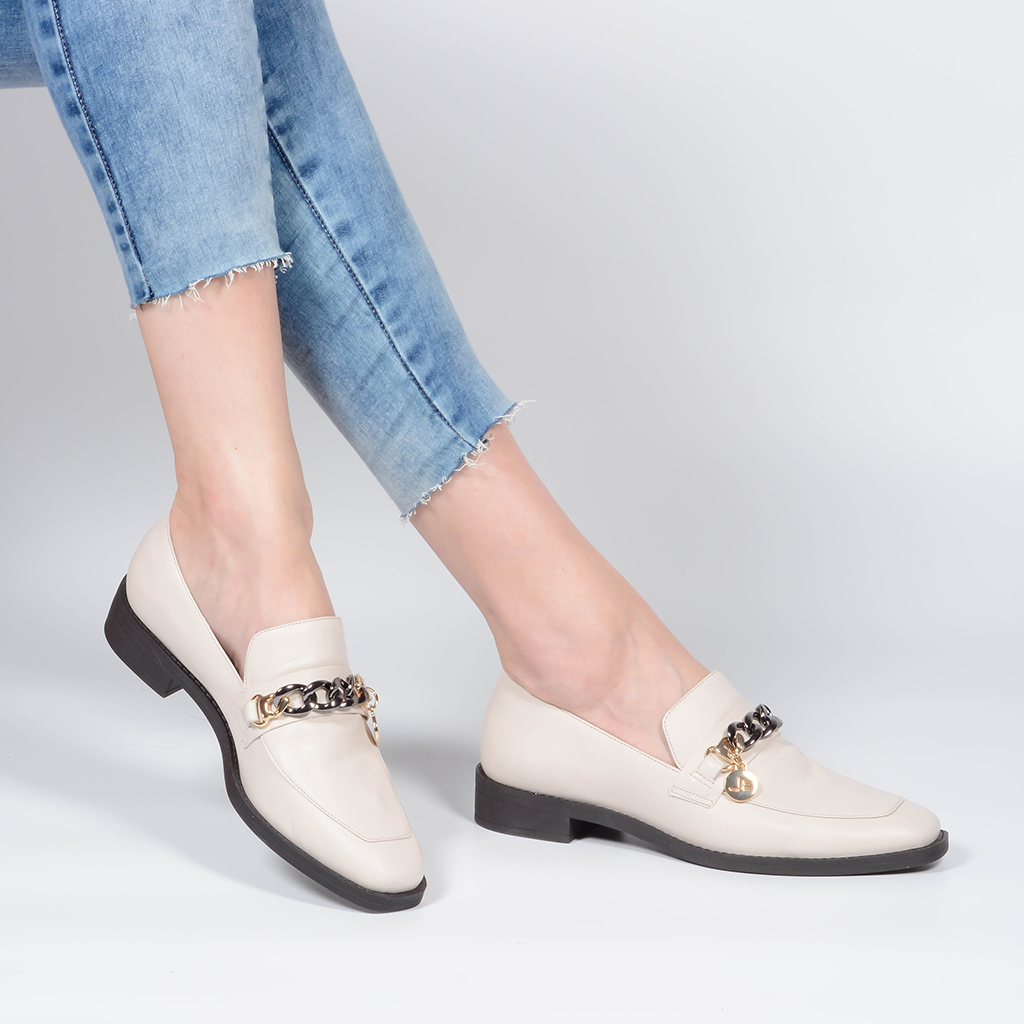 1. Design masculino: A proposta oversized que o vestuário traz muito forte nesta temporada, casa perfeitamente com sapatos robustos ou inspirados no closet masculino. Uma das apostas é o retorno triunfal do loafer – inclusive com salto. Um modelo tão versátil e confortável, quanto o novo momento da moda. Enriquecido com a aplicação de franjas, correntes, pérolas e pedrarias, mostra a personalidade deste modelo.