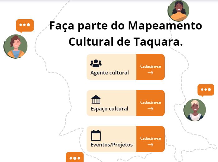 As inscrições seguem abertas e para se cadastrar basta acessar o site mapa.pro-cidadania.org ou entrar em contato pelo telefone (51) 9-8910-5138 ou ainda pelo e-mail contato@pro-cidadania.org. Acompanhe o Mapeamento Cultural de Taquara pelas redes sociais: Facebook, Instagram ou fale pelo Whatsapp.
