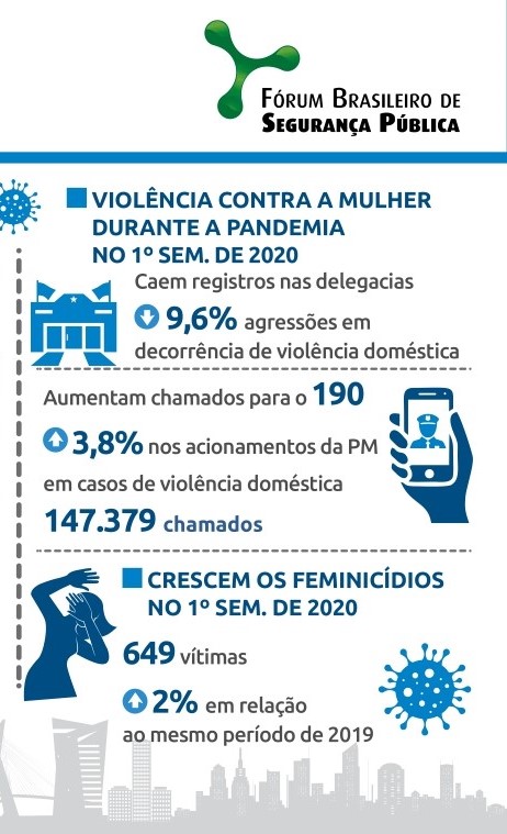 No Brasil, a cada 02 minutos uma mulher sofre 01 agressão física; a cada 08 minutos um estupro é cometido e, em 84% dos casos, o criminoso é alguém próximo da vítima, familiar ou pessoa de confiança. Em 2019 foram registradas 1.326 vítimas de feminicídio, um aumento de 2% dos casos em comparação ao primeiro semestre do ano anterior.