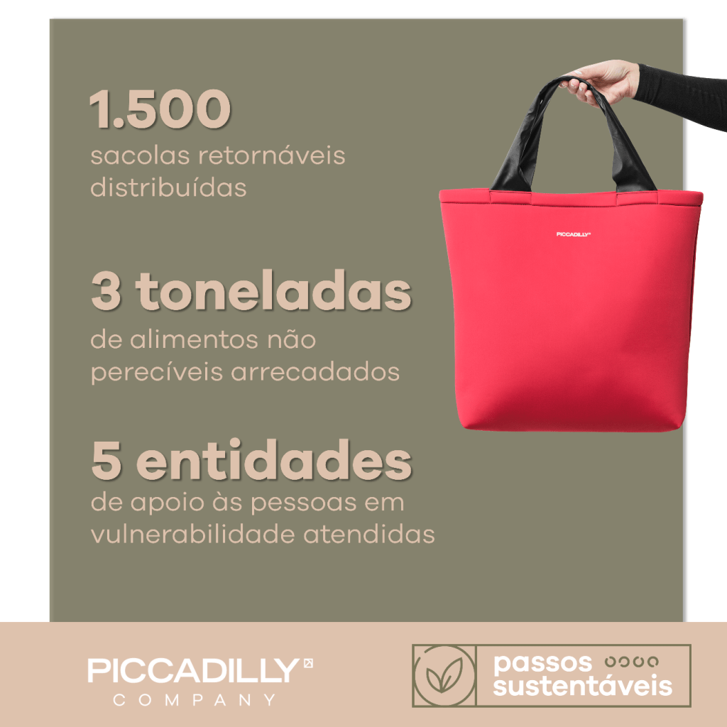 Pelo 3º ano consecutivo, a Piccadilly Company marcou o mês do meio ambiente com a campanha de troca de sacolas retornáveis por alimentos. A ação foi realizada nos três municípios onde a empresa tem unidades fabris (Igrejinha, Rolante e Teutônia), trocando mais de 1500 sacolas e arrecadando mais de três toneladas de alimentos. As doações foram repassadas para o Lar Padilha e Grupo Marmitas do Bem, ambas em Taquara, Assistência Social de Teutônia, Fundação Hospitalar Dr. Oswaldo Diesel de Três Coroas e Grupo Corrente do Bem de Rolante.