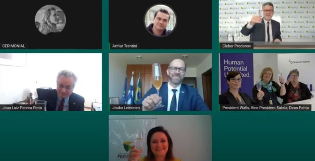 A abertura do programa aconteceu de forma virtual e contou com a participação do reitor da Feevale, Cleber Prodanov, e da presidente da Tampere University, Mari Walls. Além disso, estiveram presentes representantes das duas instituições, de reitores das universidades comunitárias gaúchas e de autoridades, como o embaixador da Finlândia no Brasil, Jouko Johannes Leinonen, e do embaixador do Brasil na Finlândia, João Luiz de Barros Pereira Pinto.