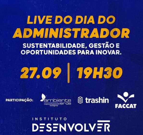 Pelo terceiro ano consecutivo, o Dia do Administrador tem uma programação especial promovida pelo Instituto Desenvolver. Com o tema “Sustentabilidade, Gestão e Oportunidade de Inovar”, o encontro online e gratuito será realizado na próxima segunda-feira, 17, às 19h30, com transmissão pelo Youtube. Entrarão em pauta questões relacionadas à gestão e futuro das organizações, além de destacar inúmeras oportunidades que surgem no horizonte, onde inovações são capazes de gerar desenvolvimento regional e exponencialidade.