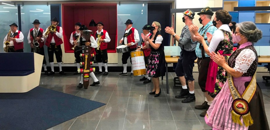 A diretora cultural da Associação de Amigos da Oktoberfest de Igrejinha (Amifest), Liége Brussius, conta que a entidade procurou o Sindicato da Indústria de Calçados para propor uma parceria, em que os associados fossem convidados a decorar seus ambientes de trabalho e estimularem o uso do traje típico. A Amifest recebeu, então, a proposta do presidente do Sindicato, Erno Luis Feyh, de inovar, e levar a bandinha e o clima de alegria para dentro das fábricas.
