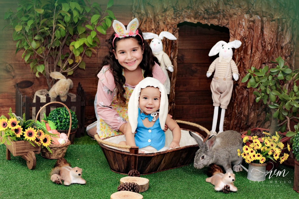 Os manos parceiros Bella e Caetano Ritter Krummenauer celebram mais uma Páscoa juntos. Foto: Bemtevi Fotografia