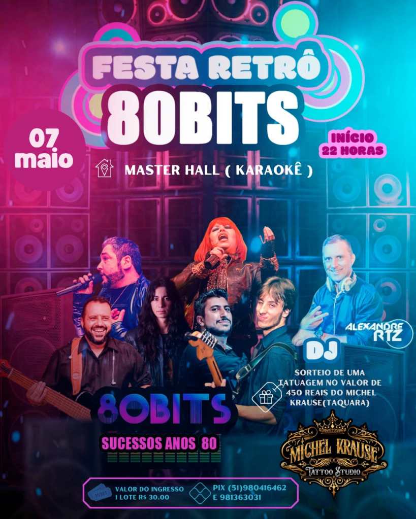 A mais tradicional banda estilo anos 1980 do Paranhana está preparando uma grande festa temática para agitar Parobé e região. No próximo sábado, 07 de maio, a Banda 80 Bits realiza a Festa Retrô, no Master Hall (Karaokê), prometendo tocar os melhores hits da Década de Ouro da música. Além das músicas, a performance e o ambiente serão uma verdadeira viagem a este tempo do passado que segue muito vivo.