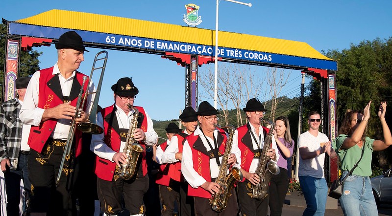 Os 63 anos de emancipação política de Três Coroas movimentaram o centro do município neste final de semana. A programação comemorativa contou com apresentações musicais e artísticas, atividades esportivas e de lazer, bate-papo, feirinhas e exposições, todas ao ar livre, valorizando a natureza, que é uma das principais riquezas da Cidade Verde. A Praça Affonso Saul, Rua Coberta, Ponte Coberta, Avenida Santa Maria e os decks entre as pontes, foram cenários para uma intensa programação que iniciou no sábado (7) de manhã e seguiu até a noite de domingo (8).