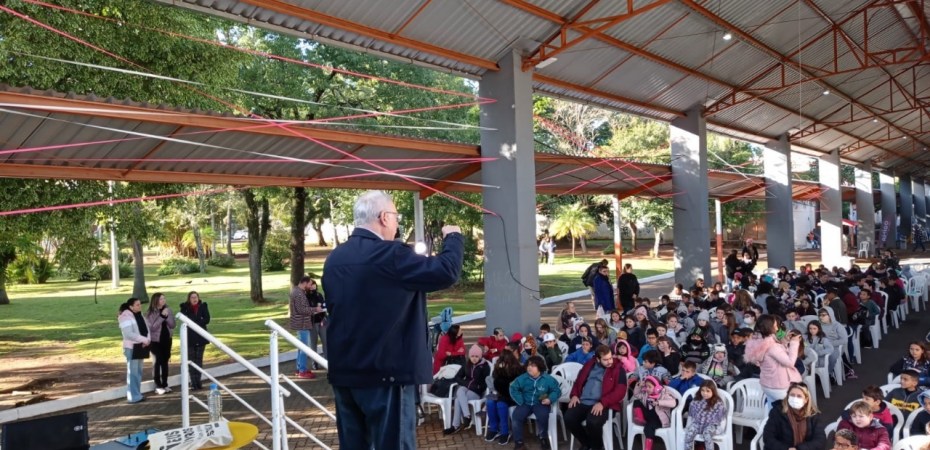O escritor Dilan Camargo, autor de dezenas de publicações voltadas ao público infanto-juvenil, foi uma das atrações desta sexta-feira (20) na Feira Literária de Taquara, realizada na Rua Coberta, no Centro da cidade. Em apresentação para alunos dos anos iniciais das escolas da cidade, ele recitou seus poemas e interagiu diversas vezes com os pequenos. “Eu gosto de escrever poesias para as crianças. No mundo delas, a palavra é muito importante. Mesmo sem saberem ler, ou sem serem letradas, as crianças falam, cantam, decoram quadrinhas, que são aqueles poemas feitos em apenas quatro versos, um rimando com o outro. Quando eu era criança, decorava quadrinhas antes mesmo de aprender a ler. E é isso o que apresento para elas, esta visão da poesia, como a brincadeira com palavras valendo muito dessa ludicidade”, relata.