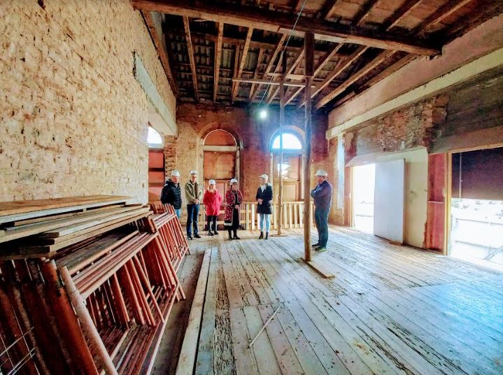Conduzindo também a visita, a arquiteta responsável pelo projeto, Leila Schaedler, explicou que uma das portas frontais do prédio será fechada e a escadaria reproduzida. “Imaginamos que com o comércio estabelecido, muitas intervenções e adaptações foram feitas, como a instalação de aberturas e paredes. Retiramos também a escada, pois vamos a reproduzir conforme a construção original, bem como manteremos algumas paredes com a estrutura aparente sem o reboco”.
