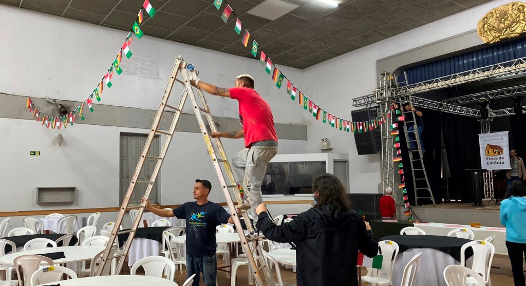 O local do evento, a Sociedade 5 de Maio, já está sendo preparado para receber a comunidade, com a distribuição das mesas, placas indicativas, e bandeiras do Brasil, de Portugal, da Alemanha e da Itália, países que serão representados através da gastronomia. “Pensamos em toda a festa com muito carinho. Já trabalhamos nela há quase três meses, e será um evento muito especial, pois o Município ainda não tinha uma Festa da Colônia, que reunisse a cultura gastronômica de diversas etnias daqui”, salienta o diretor de Cultura, Luciano Salvaterra.