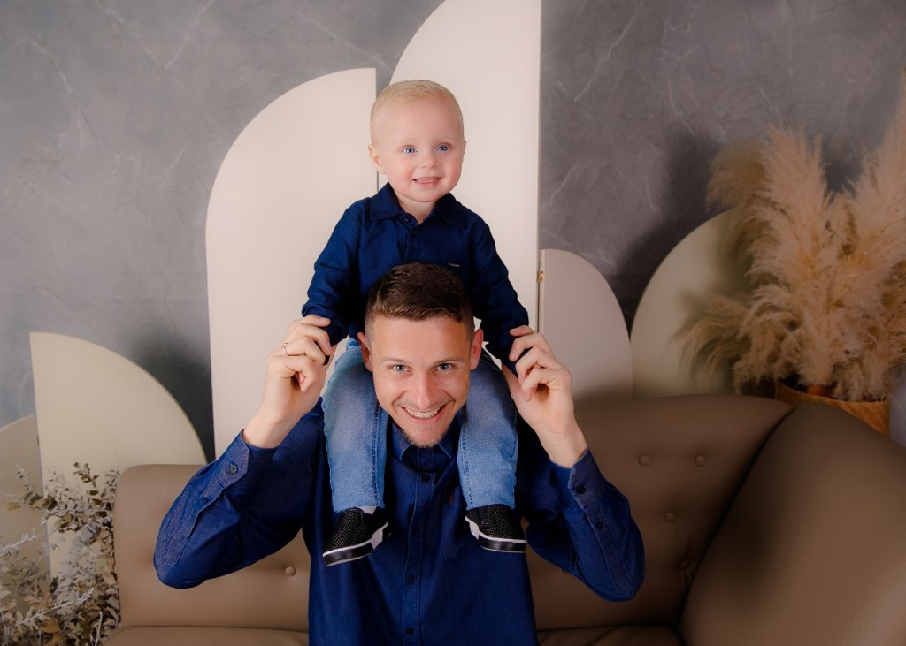 Papai Mateus Henrique Pereira Dias celebra o Dia dos Pais com o seu Leonardo Davi Soares Dias. Foto: Vivi Mello