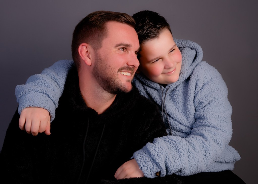 Os sorridentes Douglas Senger e seu filho Luan em clique de Analu Arnold e Ivan Oscar