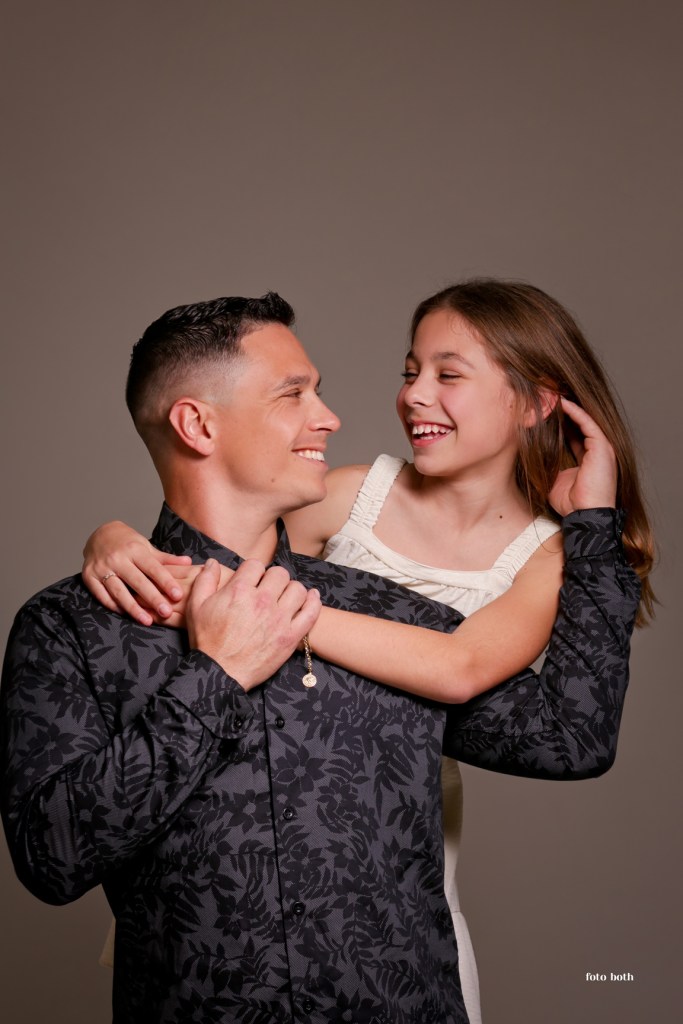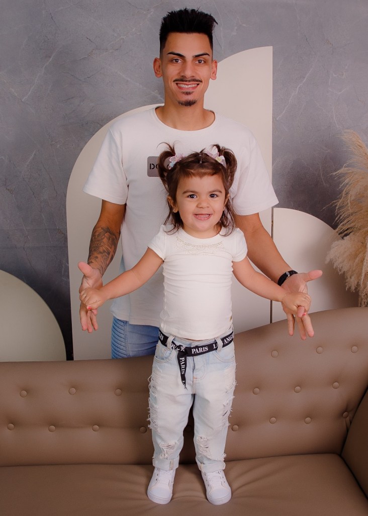 Aquele olhar de cumplicidade de pai e filha: Cristiano dos Santos e Natália para Foto Both
