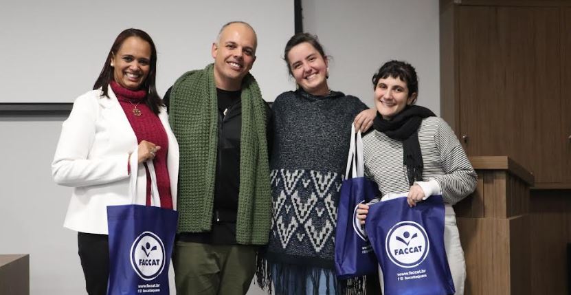 Os acadêmicos da Faccat acompanharam a abertura, que ocorreu na noite de segunda-feira, 22, trazendo como palestrantes Alice D’Almeida e Betina Nilsson, do Estúdio Etéria – Design e Vídeo, que falaram sobre “A construção do futuro pela criatividade“. Logo após, entrou em cena, a egressa da Faccat, a coordenadora de Comunicação Interna da Brocker, Ana Lúcia Fortes, que debateu a temática “Fazendo História com Endomarketing“.