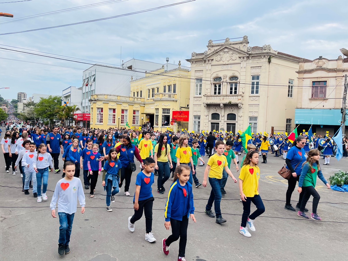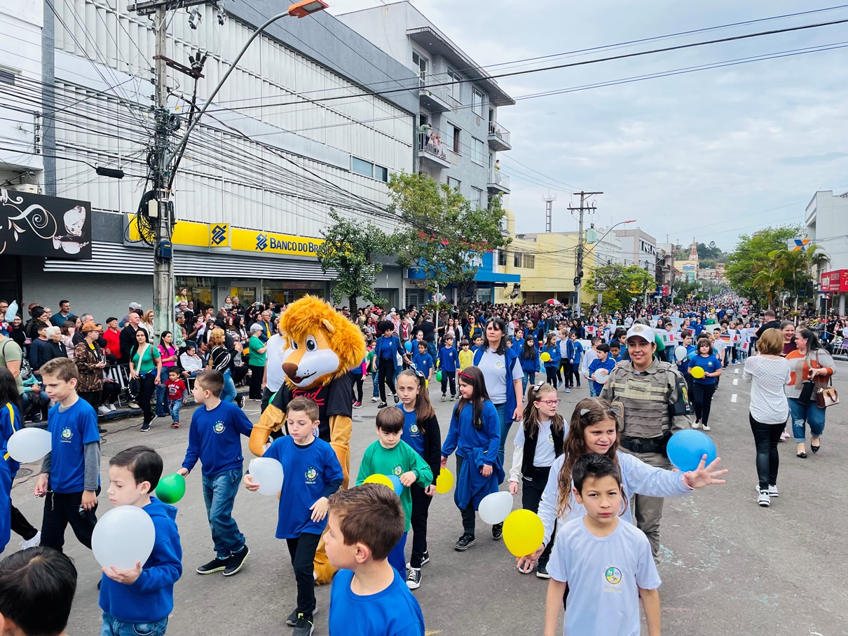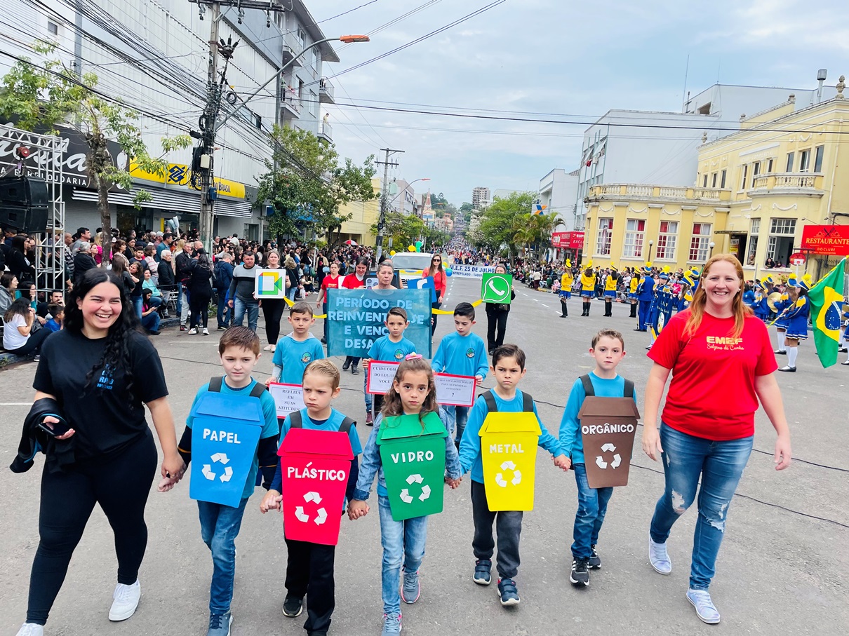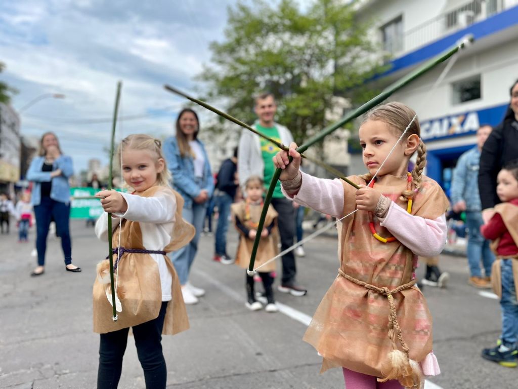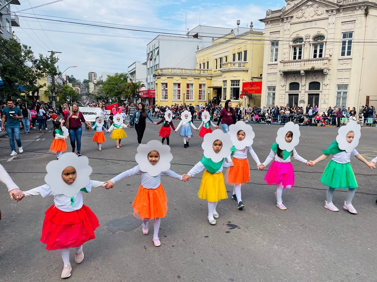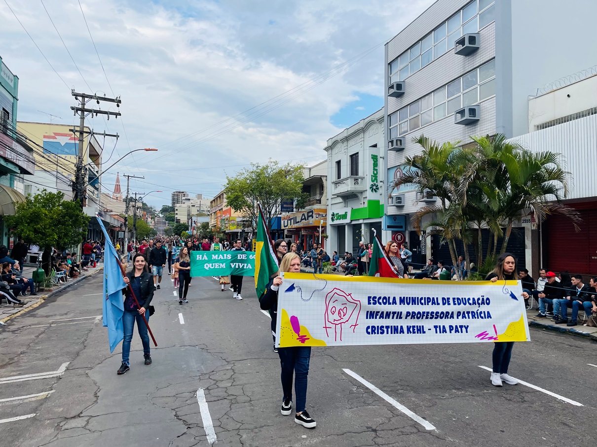As pequenas da Escola Municipal de Educação Infantil Tia Paty foram as primeiras a abrir a passeata, logo após as forças de segurança. Além delas, alunos de outras 46 escolas no Município e integrantes de entidades locais participaram da comemoração da Independência do Brasil organizada pela Secretaria de Educação, Cultura e Esporte, com apoio da Diretoria de Trânsito.