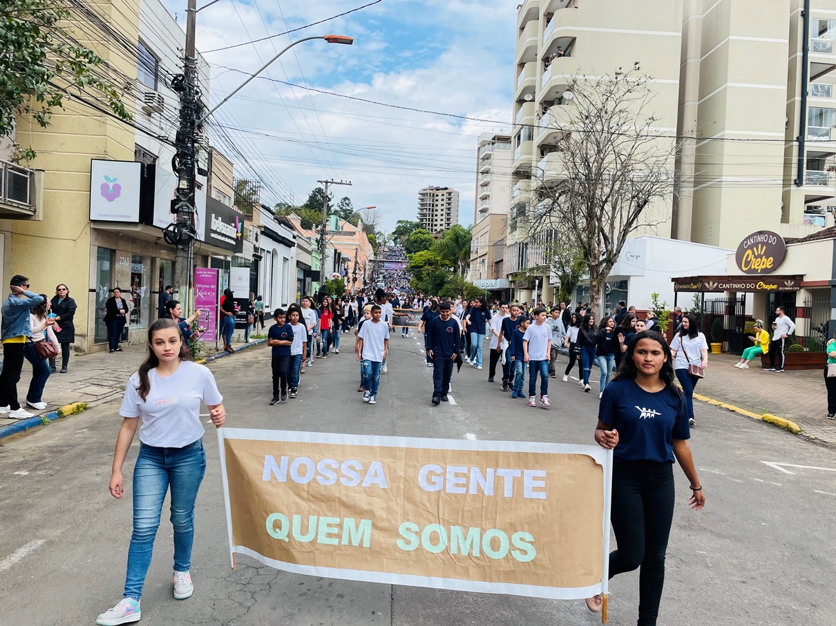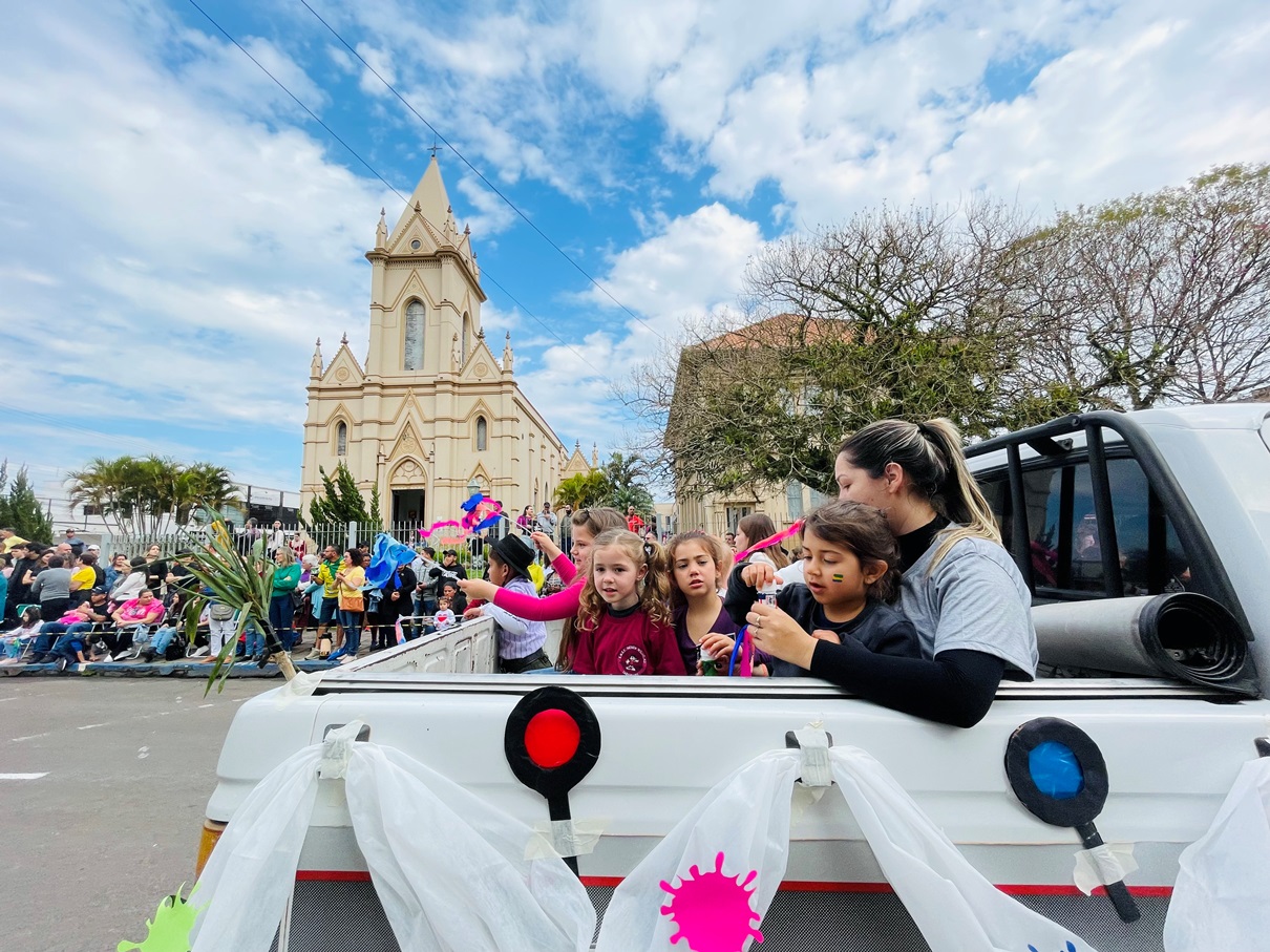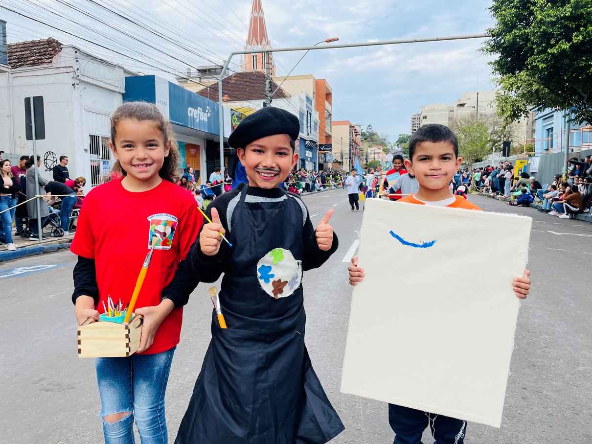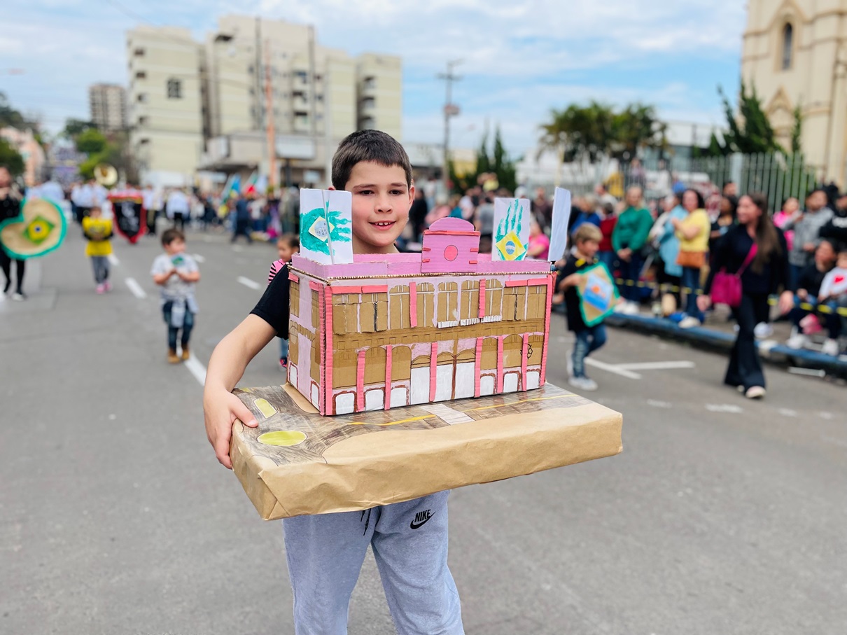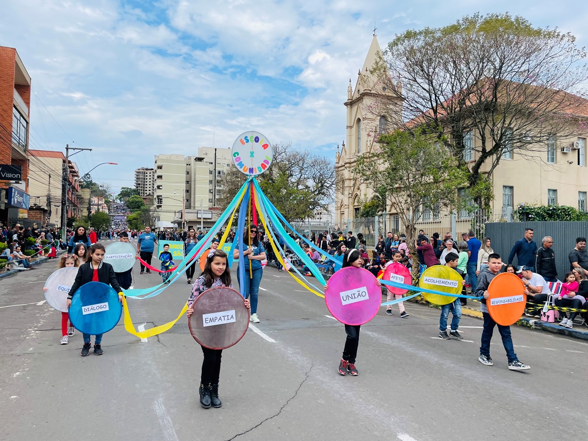 As pequenas da Escola Municipal de Educação Infantil Tia Paty foram as primeiras a abrir a passeata, logo após as forças de segurança. Além delas, alunos de outras 46 escolas no Município e integrantes de entidades locais participaram da comemoração da Independência do Brasil organizada pela Secretaria de Educação, Cultura e Esporte, com apoio da Diretoria de Trânsito.