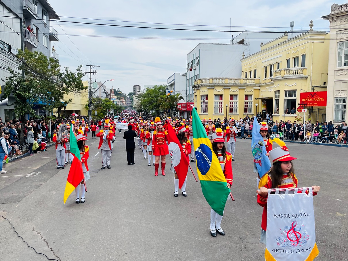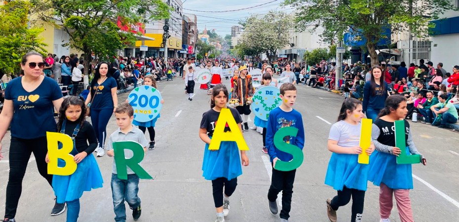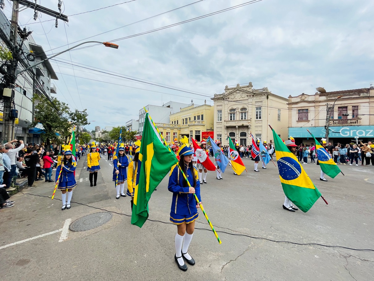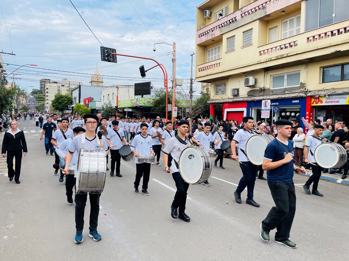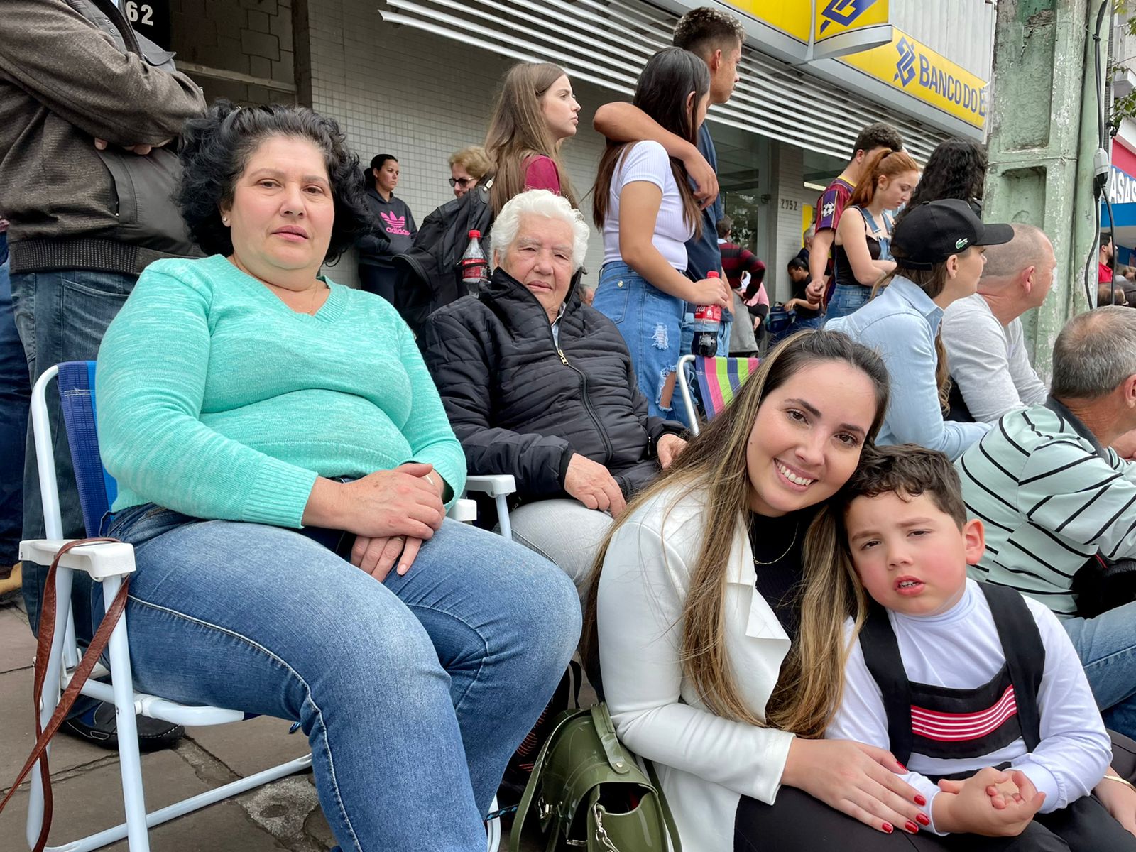 Quatro gerações da família Blauth acompanharam da calçada da Júlio o desfile. “Achei bem organizado, deu para matar a saudade”, comentou Taiane, 25 anos, com o filho Lorenzo, 4, no colo, ao lado da mãe Zenaide, 56, e da avó Zilá, 82, moradoras do Bairro Santa Rosa. Oito bandas marciais abrilhantaram o desfile e arrancaram aplausos da plateia que se espalhou entre a Câmara de Vereadores e a Praça Marechal Deodoro.