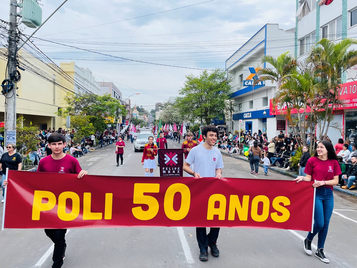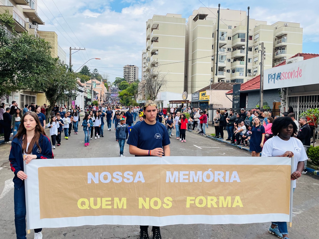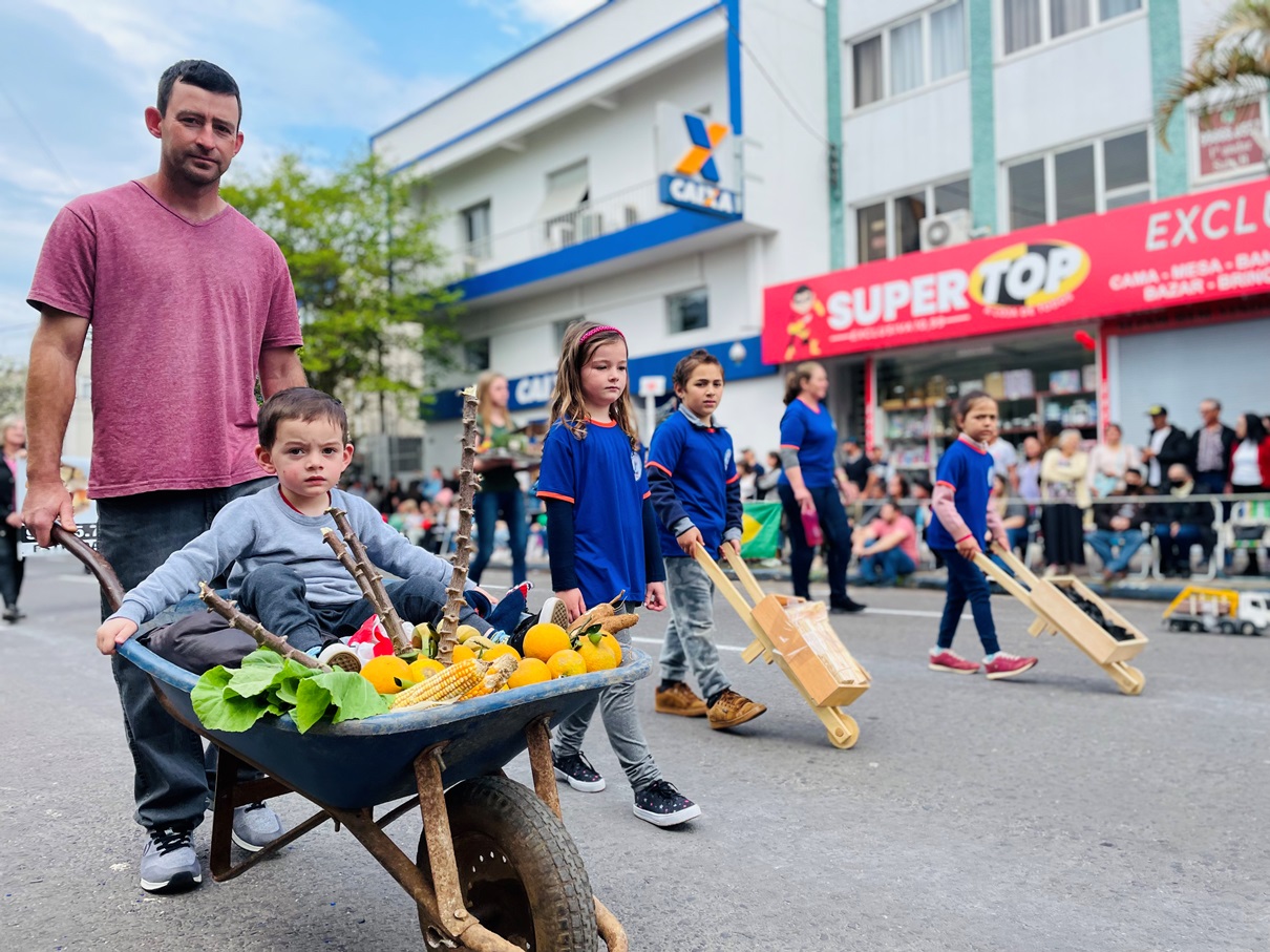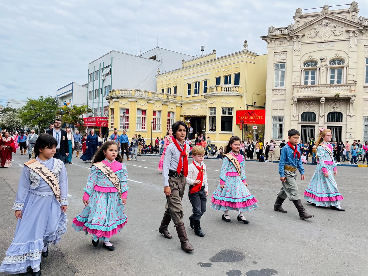 Quatro gerações da família Blauth acompanharam da calçada da Júlio o desfile. “Achei bem organizado, deu para matar a saudade”, comentou Taiane, 25 anos, com o filho Lorenzo, 4, no colo, ao lado da mãe Zenaide, 56, e da avó Zilá, 82, moradoras do Bairro Santa Rosa. Oito bandas marciais abrilhantaram o desfile e arrancaram aplausos da plateia que se espalhou entre a Câmara de Vereadores e a Praça Marechal Deodoro.