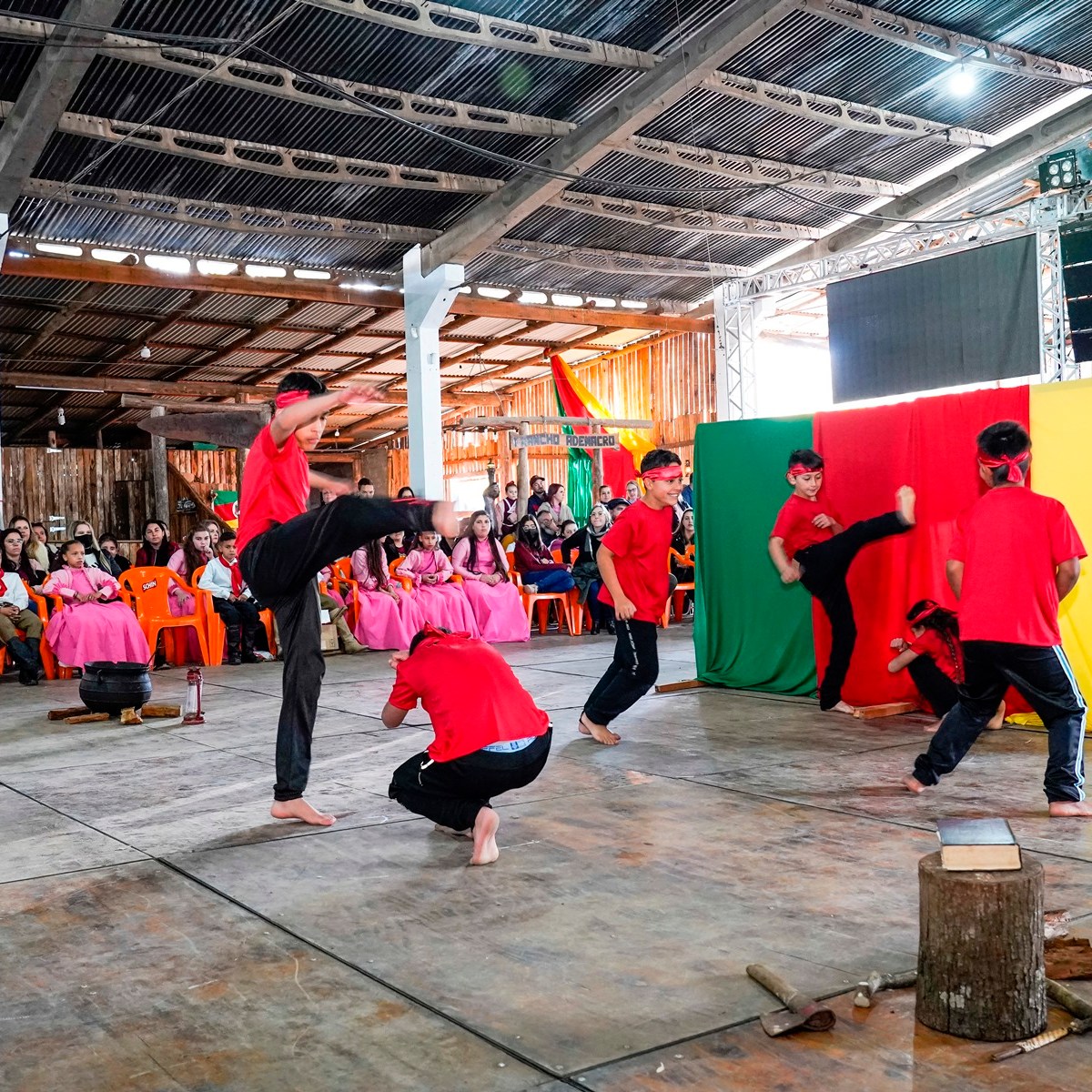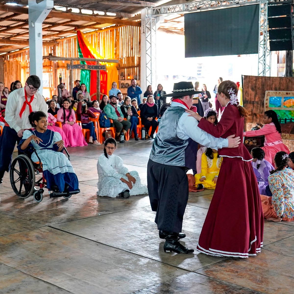 A arte e a cultura tradicionalistas seguem vivas e a prova disso pode ser percebida no Recanto Cultural “Escola e Comunidade”, um dos momentos mais lindos e emocionantes dos Festejos Farroupilhas do Paranhana. Com a participação dos estudantes, diversas apresentações com música, dança, declamações e encenações teatrais são realizadas propagando a cultura gaúcha. Durante a manhã e tarde do sábado (10), participaram 20 escolas, mobilizando aproximadamente 1,5 mil alunos, professores e diretores, além dos familiares e comunidade. O momento levou milhares de visitantes ao Parque Anibaldo Renck, na Sede Campestre do CTG O Fogão Gaúcho, em Taquara.