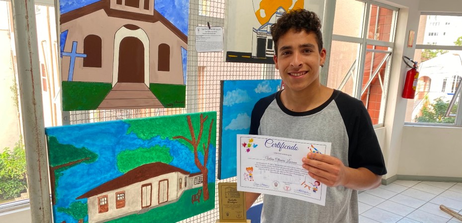 Das 42 telas em exibição, uma delas é a do estudante Uilian Oliveira Luciano, de 17 anos. Aluno da Escola Municipal de Ensino Fundamental 25 de Julho, no Distrito de Entrepelado, ele pintou um local próximo de onde mora, a Casa da Dona Moça. Ele destacou a importância do contexto histórico que aquela construção representa para a comunidade. “Houve um tempo em que escravos habitaram esta casa. E poder fazer este registro através das telas é uma sensação incrível. Pois podemos mostrar para a cidade um pouco da nossa história. Fico feliz em participar deste projeto”, salienta.