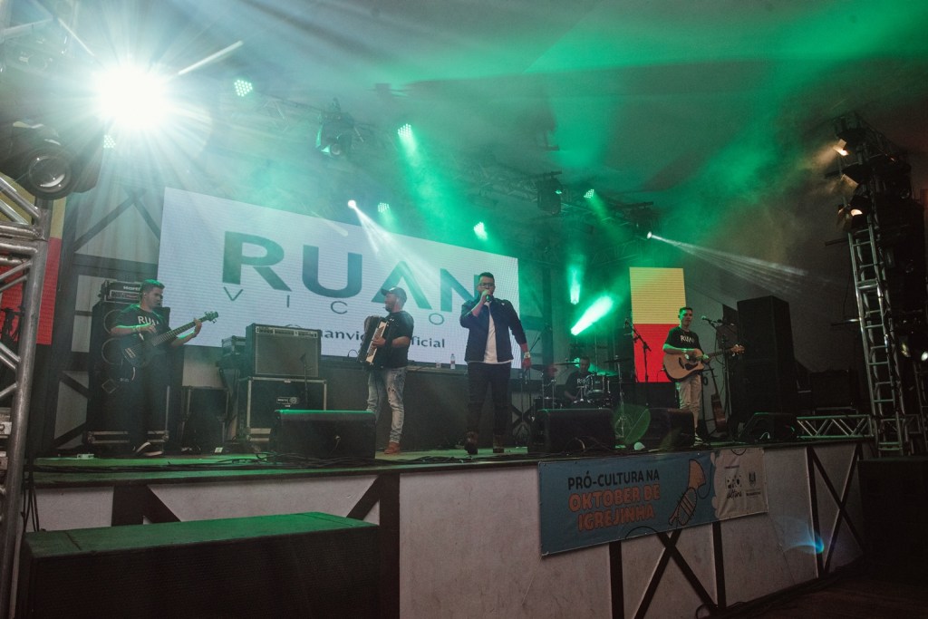 Na sequência, quem subiu ao palco foi Ruan Victor que voltou ao Ginásio Vive agora para sua apresentação com a carreira solo. Para ele, se apresentar na Oktoberfest é estar onde todo artista almeja. “A Oktober tem uma energia diferente. A gente que canta desde pequeno, cresce querendo tocar na Oktober. Estou aqui pela segunda vez e é diferente, é especial, estou realizado por estar aqui de novo”, comemora.