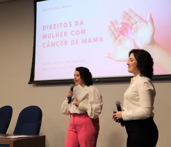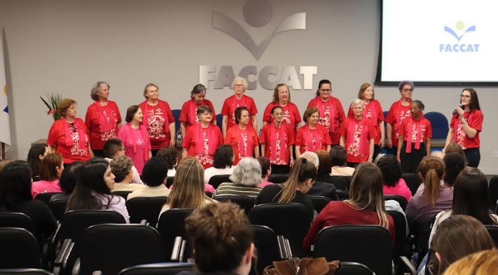 Antes das palestras e depoimentos da noite, o Coral da Terceira Idade da Faccat, o Viva a Vida, realizou uma bela apresentação. A integração foi marcada ainda pelas palestras da médica mastologista Ísis Mendes Barbosa, que falou sobre o câncer de mama; e do médico oncologista Henrique Träsel, que explicou sobre os diversos tipos de tratamento da doença e sobre a desmistificação da quimioterapia. As advogadas Betina Dutra e Eduarda Daudt falaram sobre o Direito da Mulher com câncer. O Seminário Integrado Outubro Rosa também contou com o depoimento emocionante da vitoriosa Claudia Simon, que descobriu a doença durante a sua segunda gestação.
