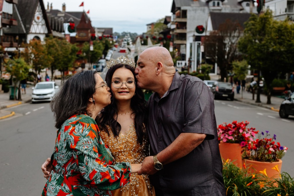 A debutante Bárbara e os pais Mirtes e Gean Leite curtindo o Natal em Gramado. O clique é de Kätlin Fotografias.